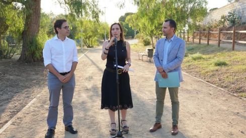 La alcaldesa de Reus, Sandra Guaita, acompañada de otros miembros de la corporación municipal, ha inaugurado este jueves, 25 de julio la nueva zona verde en torno al convento de Les Clarisses. La actuación significa la segunda fase de ejecución de la "V Verde", la red de espacios verde que recorre las afueras de la ciudad y que sobre el mapa traza la forma de una V baja.