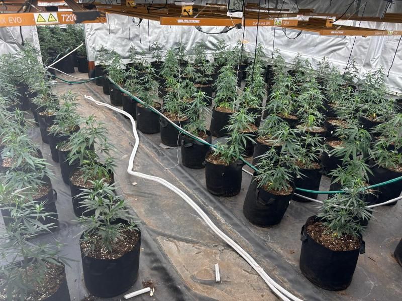 Los primeros indicios de actividad ilícita en esta nave se tradujeron en la localización de unas complejas y sofisticadas instalaciones dirigidas a favorecer el crecimiento de un millar de plantas de marihuana que presentaban un avanzado estado de crecimiento.