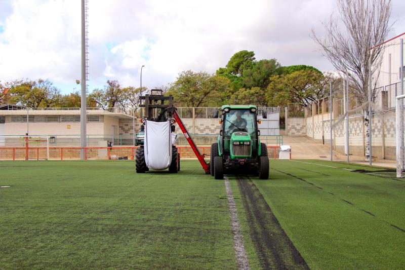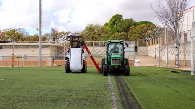 Las actuaciones llevadas a cabo han consistido en una actuación de rebaje de la capa de caucho del césped artificial. El desgaste provocado por el uso habitual de los campos de fútbol de césped artificial provoca que se deteriore la parte superior de las fibras de césped, haciendo aflorar el caucho utilizado como relleno y que éste pase a estar por encima del césped. Con la actuación de mantenimiento se rebaja la cantidad de caucho de forma que el césped vuelve a ser el material de contacto con los jugadores y el balón.