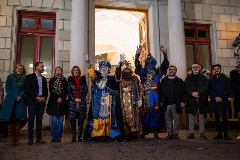 La Cabalgata ha culminado en el Ayuntamiento con la recepción por parte de la alcaldesa y del consistorio, que han entregado a los Reyes de Oriente las llaves de la ciudad, desde el balcón del Palacio Municipal y ante una plaza del Mercadal llena a rebosar.