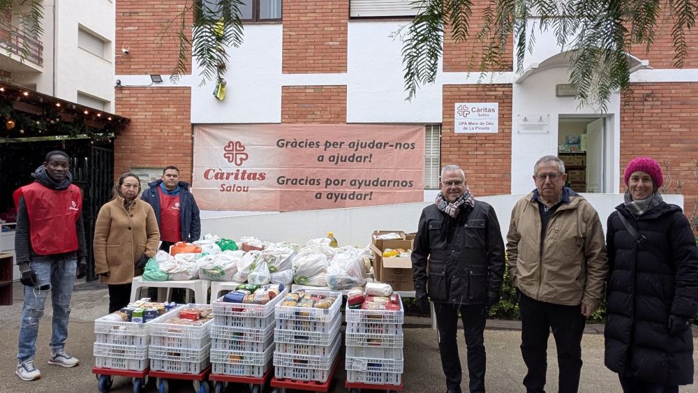 El alcalde de Salou, Pere Granados, acompañado de la concejala de Juventud e Infancia, Noelia Izquierdo, ha visitado las instalaciones de Cáritas y Eluzai para conocer de primera mano el resultado de la recogida solidaria de alimentos impulsada durante el Parque de Navidad.