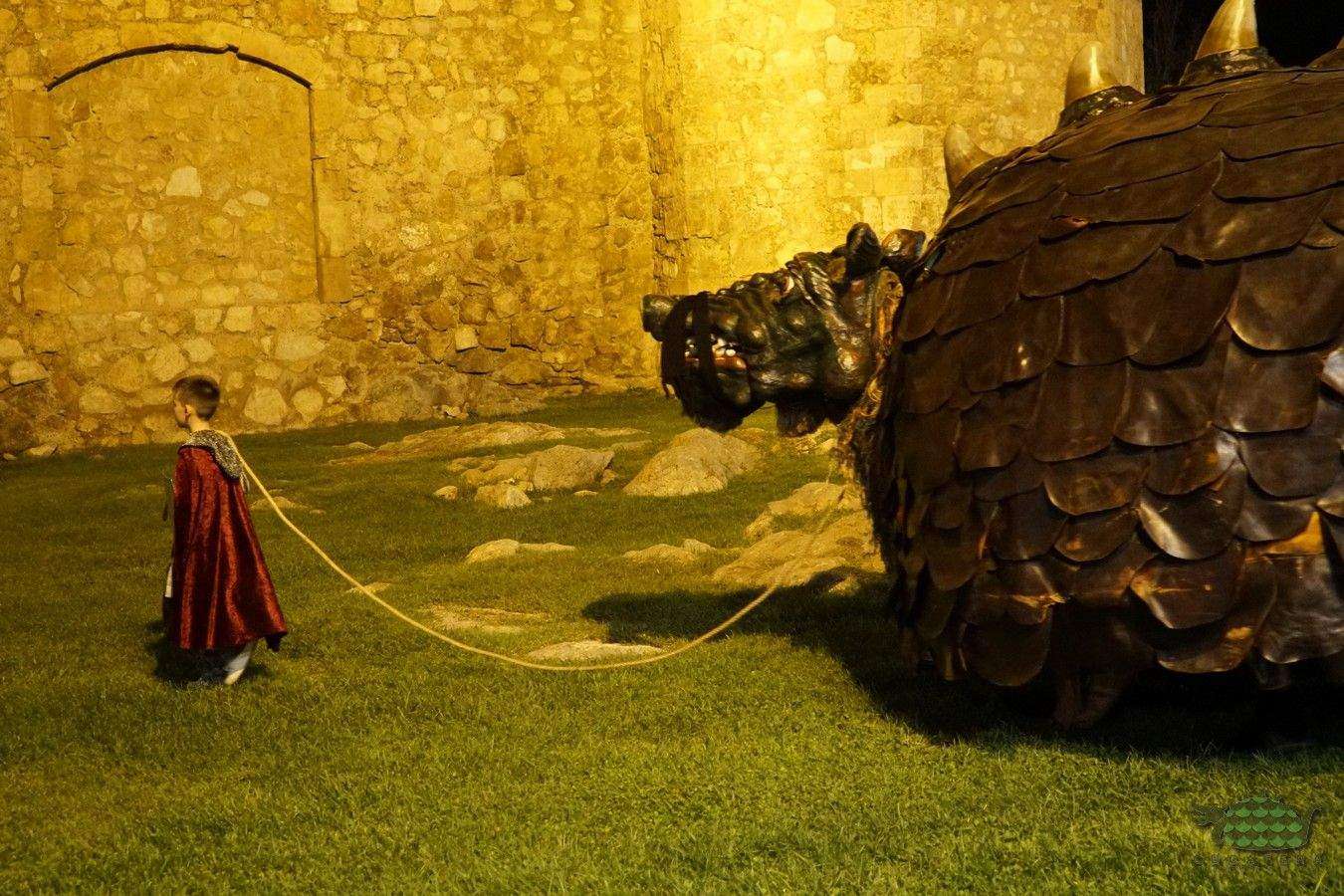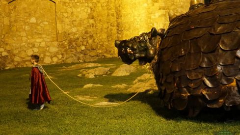 El acto, sin embargo, no nació con vocación de calcar la Bajada del Águila.El Adriano recuerda que propuso a sus compañeros ir más allá y dotarlo de una historia."Para que no fuera simplemente bajar las escaleras y hacer un pasacalles, pensé que podríamos hacer la representación de la leyenda", afirma.Se puso a indagar en los orígenes de las Cucaferas de todo el país hasta llegar a una historia similar a la que conocemos de San Jorge.A diferencia de aquel relato, en el de la Cucafera es la princesa quien actúa de heroína.Ella domestica a la bestia, que atemorizaba a la población y se comía todo lo que encontraba.