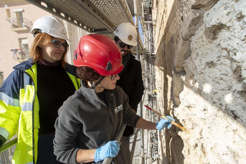 A principios del año que viene, se instalará el andamio en la tercera fachada a restaurar, la que está tocando a la Plaza del Rei, de la que se llevarán a cabo los mismos trabajos que en las otras dos fachadas; pero así mismo el monumento tiene en marcha otros trabajos de mejora como son la restauración de la bóveda de la sala del sarcófago de Hipólito y las escaleras de acceso al museo.