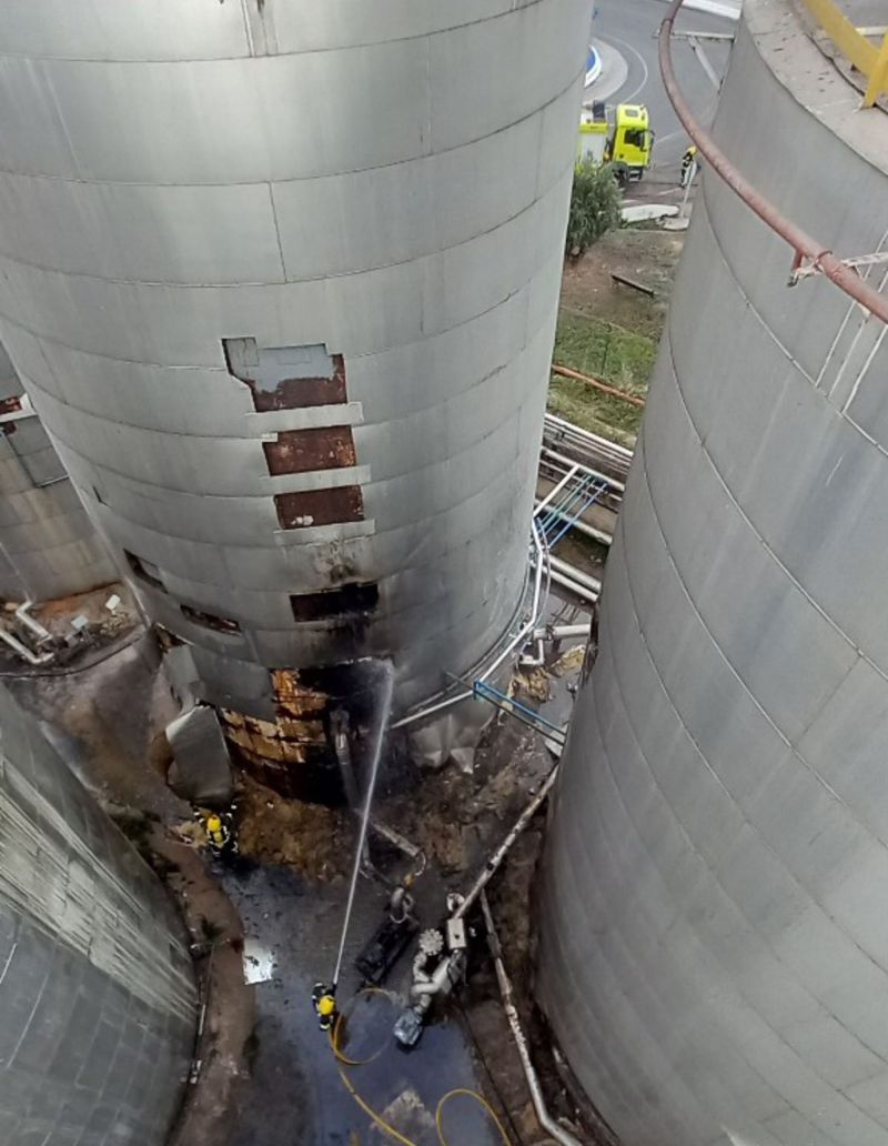 Según han informado los Bomberos a través de las redes sociales, el fuego ha quedado totalmente extinguido tras una actuación rápida y coordinada. El incendio ha afectado únicamente a la capa de aislamiento exterior del depósito, sin que se hayan producido daños personales ni afectación al producto almacenado.