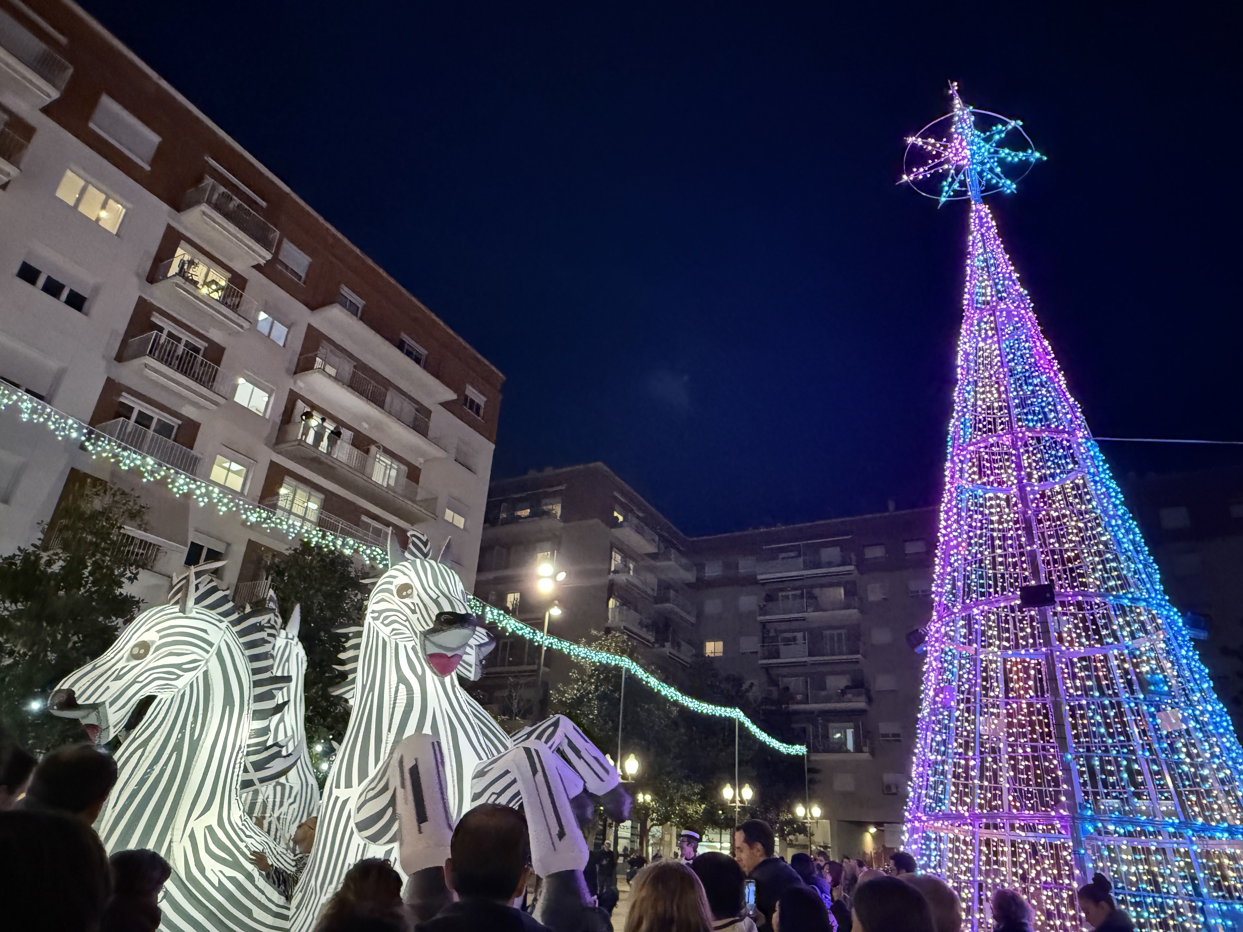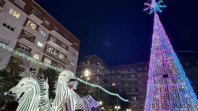 El encendido del árbol y la apertura de las atracciones han estado acompañados de una orquesta itinerante y de la aparición de cebras inflables, que han iniciado un pasacalles familiar por las calles del centro.