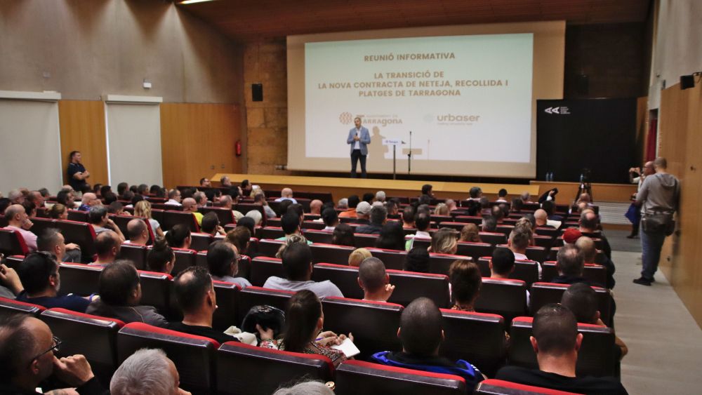 El encuentro, celebrado en la Antigua Audiencia, ha contado con la asistencia de más de 200 trabajadores, que han escuchado las explicaciones del alcalde de Tarragona, Rubén Viñuales, del representante de Urbaser y del secretario general de servicios públicos de UGT en Tarragona, Joan Reinaldo.