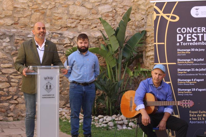 El concejal de Cultura, Daniel Pujol, acompañado del alcalde Vale Pino, ha presentado la programación musical que tendrá Torredembarra estos próximos meses.
