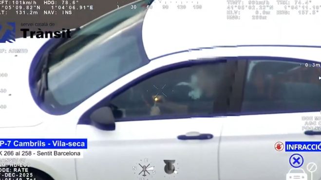Los Mossos d'Esquadra compartieron ayer por la tarde unas imágenes captadas con el helicóptero de Tráfico que han generado división de opiniones en las redes sociales. En el vídeo, se puede apreciar cómo el conductor de un turismo blanco circula por la AP-7 en el término municipal de Salou mientras carga un cigarrillo, habla y hace fotos con su móvil.