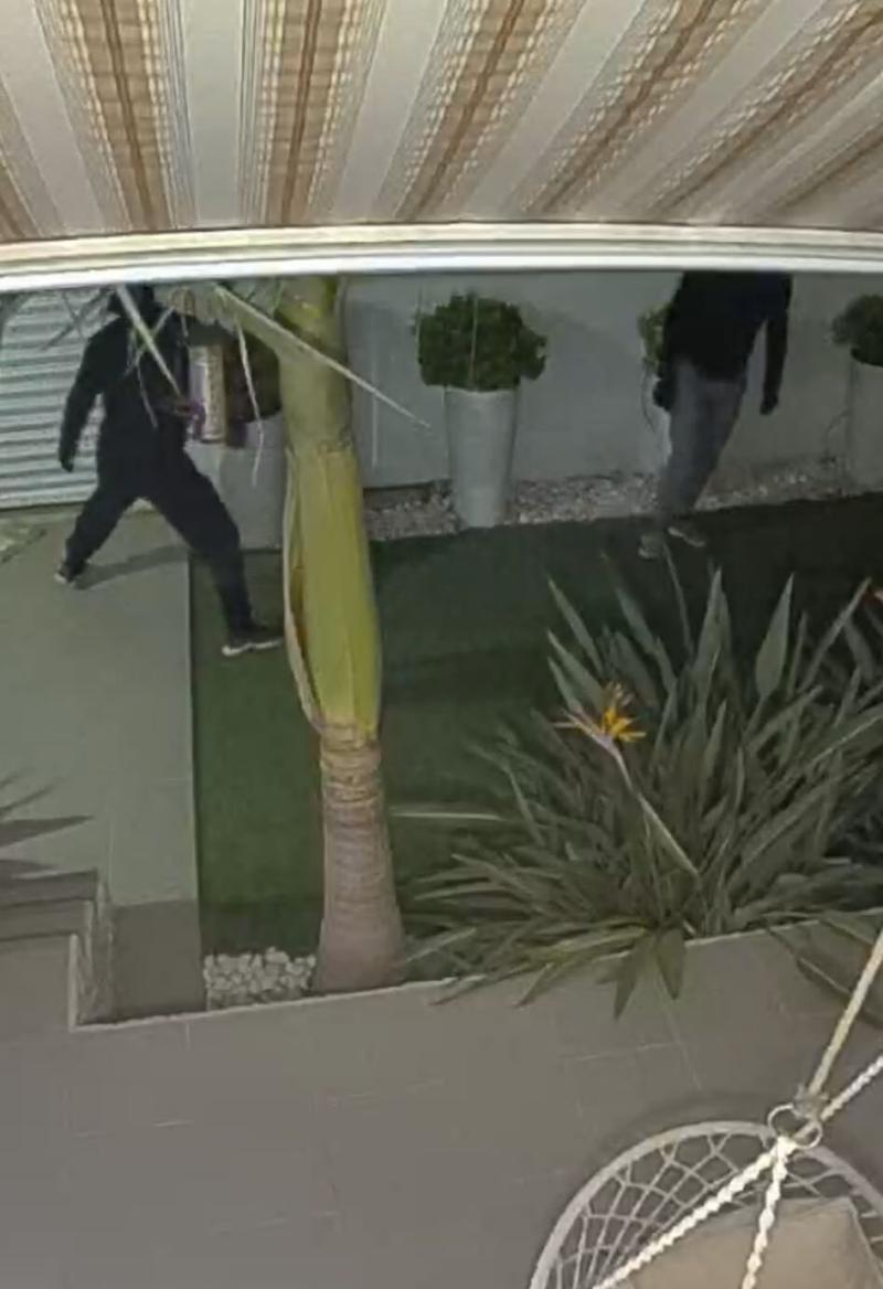 En las imágenes se observa a un individuo encapuchado y completamente tapado en diferentes habitaciones de la casa y también en el jardín. Y en un vídeo se aprecian como mínimo dos individuos que han arrancado una de las cámaras de seguridad, que sigue grabando hasta que la desconectan para evitar ser descubiertos.