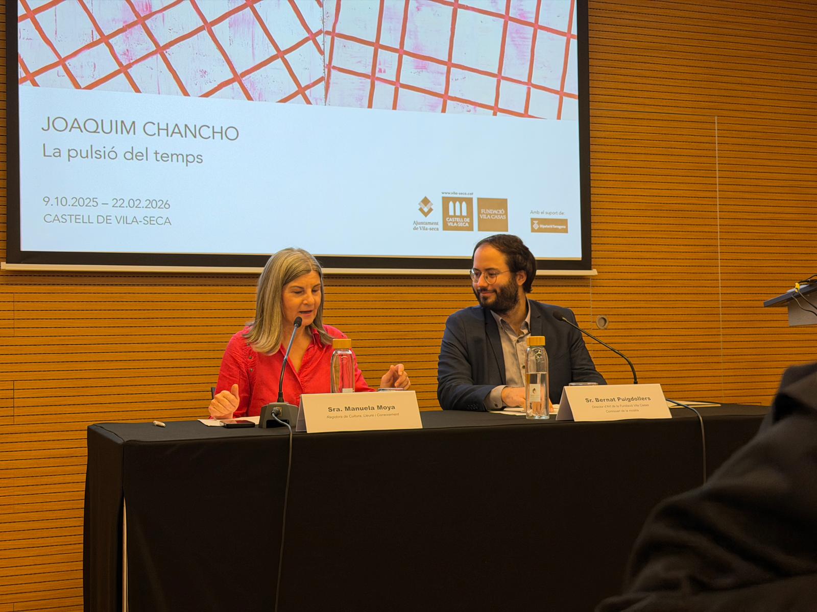 Hoy, el Castillo de Vila-seca ha inaugurado la exposición La pulsión del tiempo de Joaquim Chancho, uno de los grandes nombres de la abstracción en Cataluña, con reconocimiento internacional. La muestra es fruto de la colaboración entre el Ayuntamiento de Vila-seca y la Fundación Vila Casas, y ha sido presentada por la concejala de Cultura, Manuela Moya, y el director artístico de la Fundación, Bernat Puigdollers.