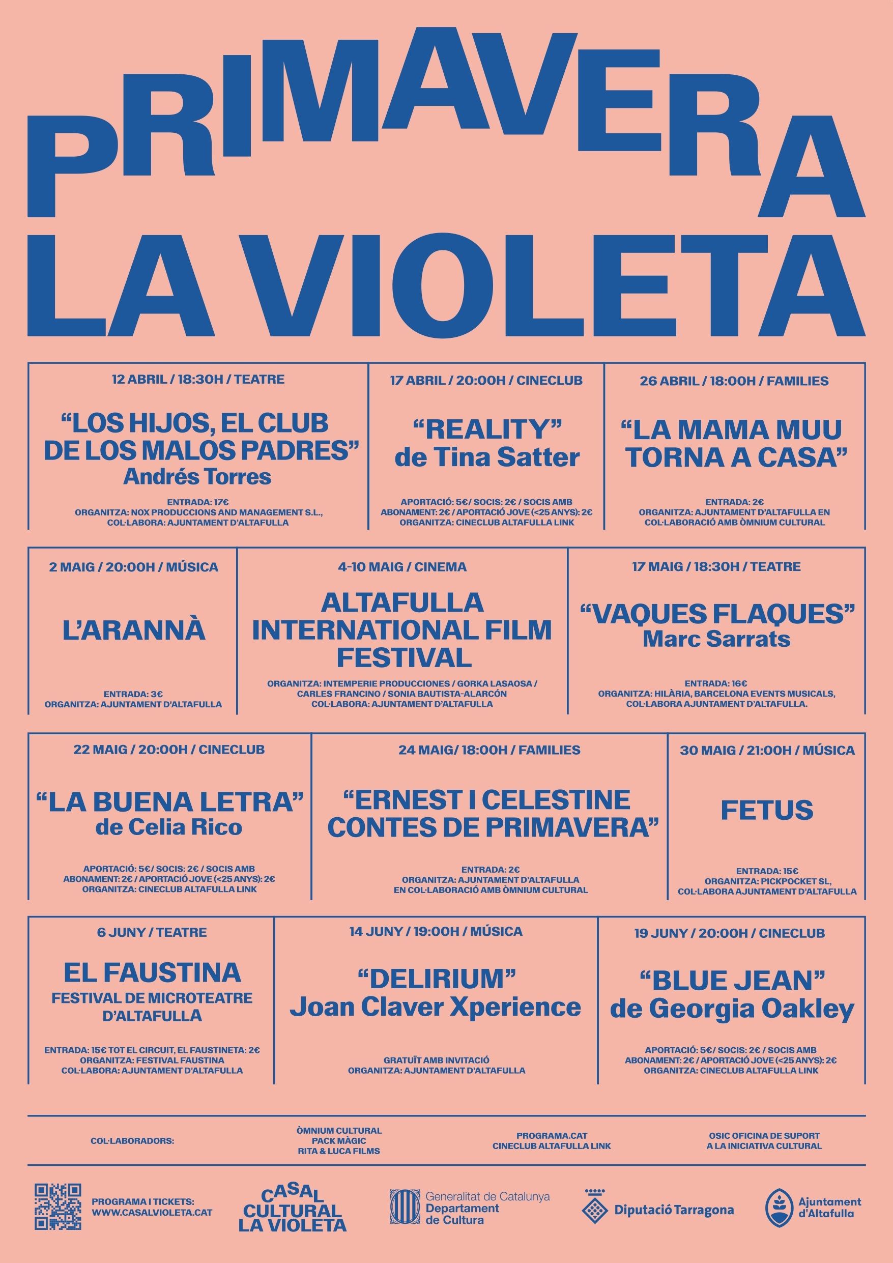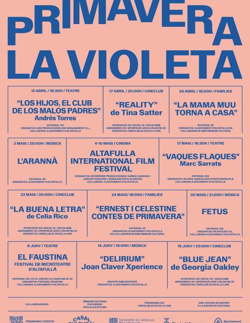 En la programación de primavera en el Casal Cultural La Violeta colaboran entidades e instituciones como Òmnium Cultural, Pack Màgic, Rita & Luca Films, Programa.cat, la Diputación de Tarragona, el Departamento de Cultura de la Generalitat, Imaginautes y la Oficina de Apoyo a la Iniciativa Cultural.
