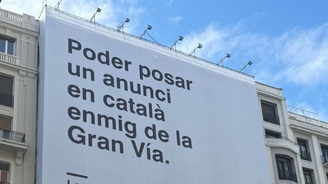 El govern espanyol ha desplegat una lona de grans dimensions en un edifici de la Gran Via de Madrid amb un missatge que combina català i castellà per commemorar els 50 anys del 20 de novembre. El cartell, de fons blanc i tipografia negra, exhibeix a la part superior esquerra la frase: “Poder posar un anunci en català enmig de la Gran Vía”, mentre que just a sota, amb lletres més petites, hi figura “La democracia es tu poder”, acompanyat només de l’escut d’Espanya.