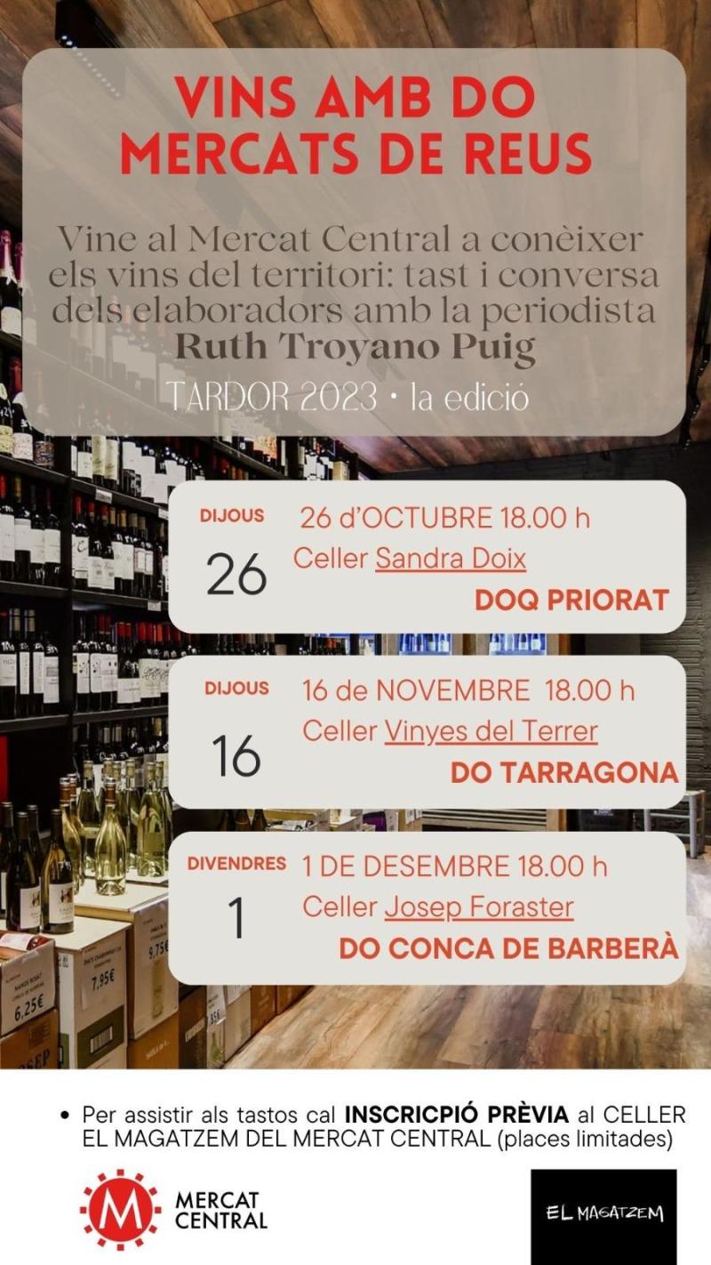 Així, la primera edició de «Vins amb DO Mercats de Reus» presenta aquests tres tastos repartits les pròximes setmanes: