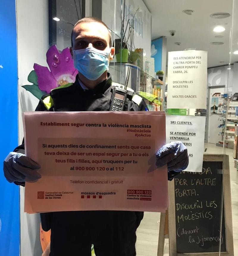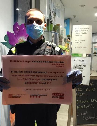 Aquesta iniciativa es concreta a posar en lloc visible dels comerços un cartell amb el missatge següent:“Establiment segur contra la violència masclista. Si aquests dies de confinament sents que casa teva deixa de ser un espai segur per a tu o els teus fills i filles,aquí truquem per tu al 900 900 120 o al 112. #NoEstàsSola #JoActuo”.