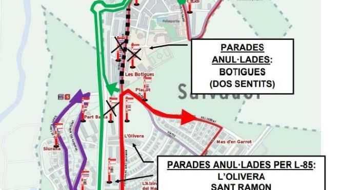 Els dies des del 2 al 4 d’Agost de 2019, des de les 18:00 h., fins a les 03:00 h., recorregut tallat per Avinguda Pallaresos per festes del Barri Sant Salvador i Sant Ramon. Recorreguts alternatius durant aquest horari segons plànol: Des de Av. Pallaresos, edifici Telefònica, sortir N-240 i entrar per rotonda Camp de tir, direcció Sant Salvador. Des de Sant Salvador recorregut normal fins a sortida per rotonda Camp de Tir, continuant per N-240, direcció Centre, fins a la rotonda d’entrada Sant Ramon: Per L-5: Tornar per Av. Pallaresos fins a Planot, continuant normalment. Per L-85: Entrar per Part Baixa, efectuant recorregut normalment. Per L-71N: Final línia parada Planot (cantonada).