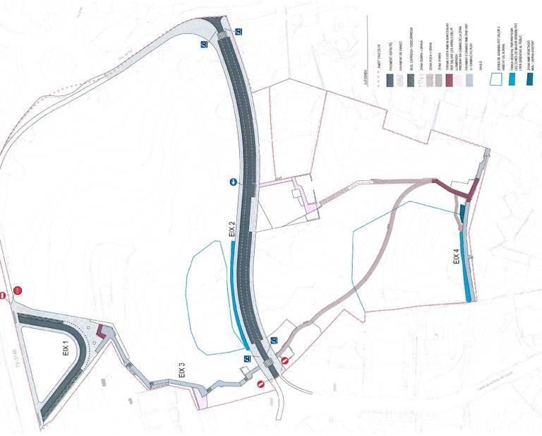 D’altra banda, per tal de preservar tant la zona verda com la “Silene Ramosissima” que es troba dins la zona afectada, es projectaran una sèrie de camins que travessaran l’actual zona boscosa.