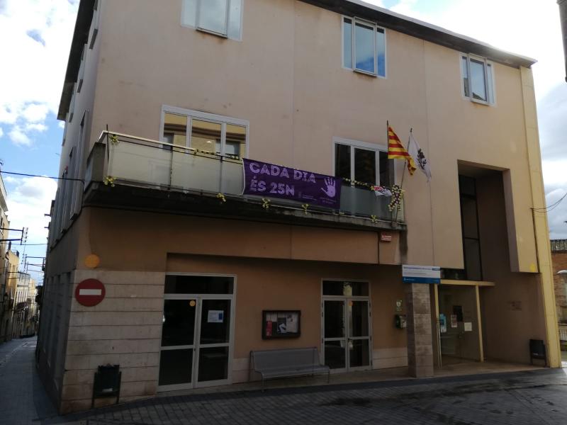 Durant aquests dies la pancarta “Cada dia és 25N” presidirà el balcó de l'Ajuntament, amb un llaç de color violeta.