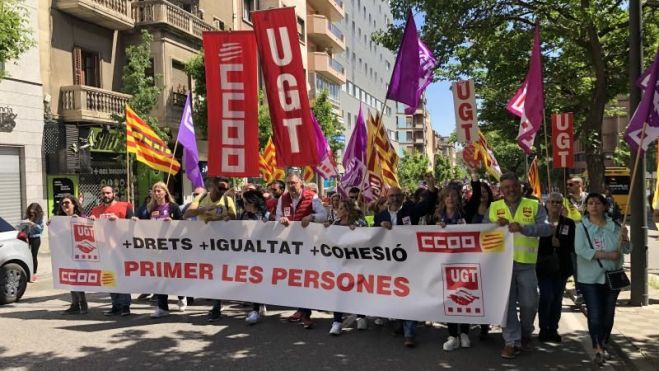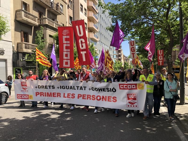 La UGT-Terres de Lleida i CCOO Lleida han celebrat aquest dimecres al migdia la tradicional manifestació de l'1 de Maig, que aquest 2019 porta per lema '+ drets, + igualtat, + cohesió. Primer les persones!'. Una marxa a la qual s'han sumat centenars de persones qui han volgut reivindicar els seus drets i que en aquesta ocasió ha canviat el seu recorregut. Enguany, s'ha iniciat a la Plaça del Treball i ha finalitzat al Parc de Santa Cecília amb un vermut popular.
