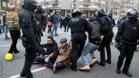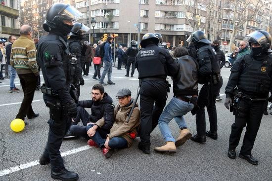 El Departament d'Interior ha confirmat la detenció d'un manifestant a Barcelona, a la protesta de la Gran Via, a l'alçada del carrer Urgell. Tot i que en un primer moment, Interior havia situat la detenció a la protesta de la plaça Lesseps, el Departament ha rectificat i ha assegurat que l'arrest s'ha produït prop de la plaça Espanya. La detenció s'ha produït per atemptat a l'agent de l'autoritat, després que el manifestant donés un cop de puny a un agent dels Mossos d'Esquadra.