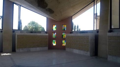Les obres dels columbaris (petits nínxols per dipositar urnes de cendres) van iniciar-se el passat mes de maig i se’n va fer càrrec de les mateixes l’empresa Folch SA, a la qual van estar adjudicades per un import de 36.772 euros. La seva ubicació, a la Sala de la Pau, no impedirà que aquest espai continuï fent les funcions de recinte ecumènic.Els columbaris estan revestits amb alabastre, la qual cosa dignifica la seva imatge. Això ha estat possible, perquè la Paeria ha reutilitzat per a aquesta finalitat les peces d’alabastre que hi havia a la sala d’espera de l’antiga Oficina Municipal d’Atenció Ciutadana (OMAC), als baixos de l’edifici Pal·les, les quals es van guardar en un magatzem municipal quan aquesta oficina es va traslladar a les noves dependències de la Rambla Ferran.