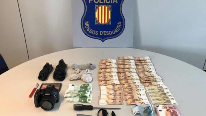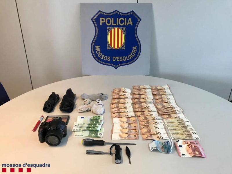Els mossos van escorcollar els dos homes i el seu vehicle i van localitzar-los 2.390 euros en efectiu, una càmera de fotos, maquillatge i diversos objectes susceptibles de ser utilitzats per a cometre robatoris amb força a interior de vehicle com són un tornavís de punta plana, una lot, guants i una clau de ferro. Els detinguts van passar divendres a disposició judicial i van quedar en llibertat amb càrrecs.