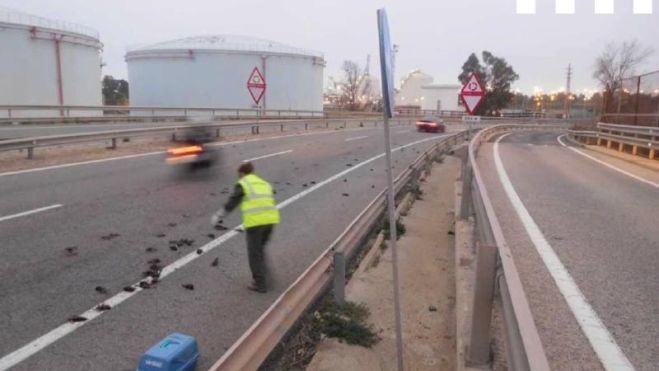 Posteriorment, es van difondre unes imatges gravades per les càmeres de seguretat del complex petroquímic que mostren com un vehicle que circula en direcció sud impacta contra un estol d’estornells que volava a molt baixa alçada. La ubicació de les mateixes quadra amb el lloc dels fets i l’hora -diumenge 16 de febrer a les 17.13 hores- és coincident amb el primer avís rebut minuts després per part del 112.