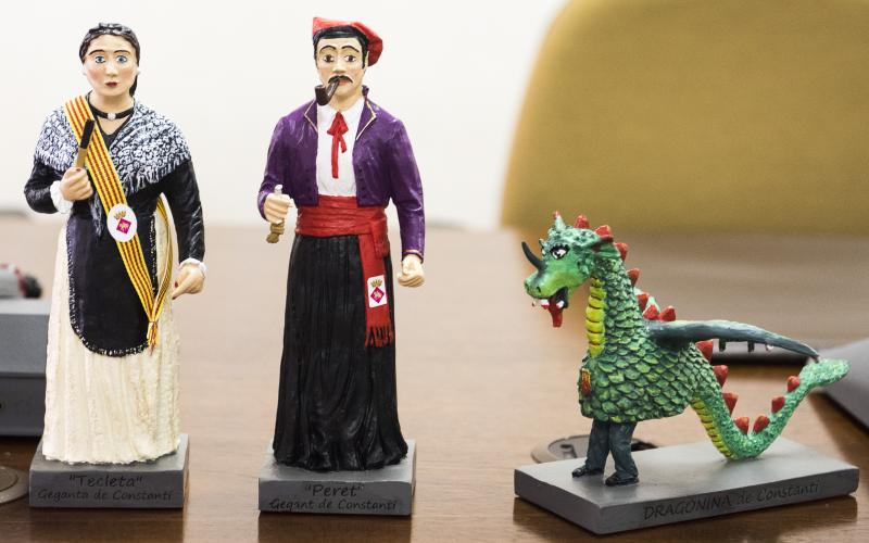 Aquest dijous 6 de setembre s’ha fet a la Sala de Plens de l’Ajuntament de Constantí l’acte de presentació de la rèplica en miniatura dels elements del seguici i la cultura popular de Constantí. Amb la presència de l’alcalde, Oscar Sánchez, i de la regidora de Cultura, Dolors Fortuny, s’han presentat les figures en miniatura dels Gegants de Constantí, el Peret i la Tecleta, i també de la Dragonina, l’emblemàtica figura del bestiari constantinenc.L’acte ha comptat amb la presència d’una àmplia representació de l’Associació d’Amics de la Colla C.O.C.A., que històricament han estat els portadors i cuidadors dels Gegants i de la Dragonina.L’alcalde, Oscar Sánchez, ha subratllat la voluntat de l’Ajuntament de Constantí de “contribuir al coneixement i difusió del patrimoni cultural, històric, lúdic i artístic del municipi”. En aquest sentit, l’any 2015 ja es va procedir a la restauració dels Gegants i de la Dragonina originals.Les figures en miniatura han estat elaborades per Artesania Boltà, de Valls. Cada peça és una peça única que ,elaborades amb marmolina i pintades a mà, reprodueixen amb tota mena de detalls els Gegants i la Dragonina originals.Des de l’Ajuntament, l’alcalde ha manifestat que la voluntat és que “en un futur, es pugui ampliar aquesta difusió dels elements del seguici amb les rèpliques de les recentment estrenades àligues gran i petita de Constantí”.Les figures en miniatura dels Gegants i la Dragonina es posaran a la venda, a un preu de 20 €uros, a l’OAC de l’Ajuntament.