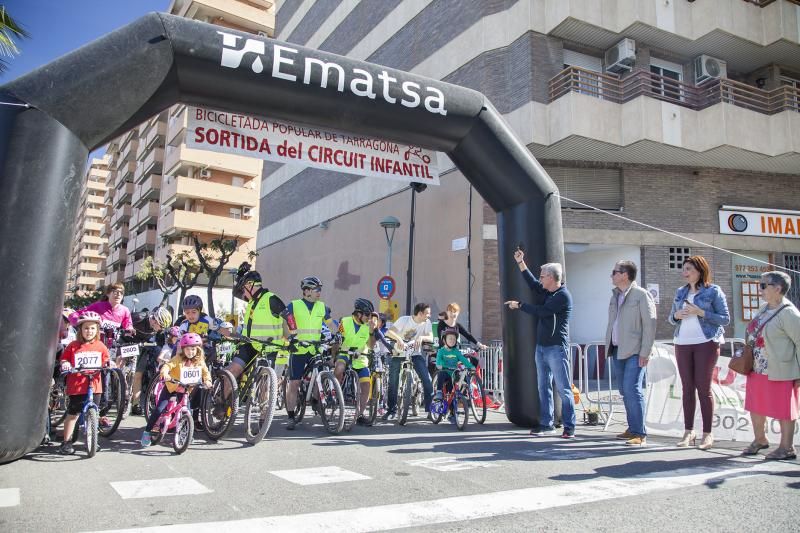 Fins a 2.980 ciclistes inscrits s’han donat cita aquest matí a l’avinguda Ramon i Cajal, punt de sortida de la 29a Bicicletada popular de Tarragona. El pilot de ciclistes ha completat un recorregut de 17 km, en la versió popular, i de 3,7 km, en el circuit infantil, que ha permès als seus participants passejar tranquil·lament per algunes de les principals vies de la ciutat, en una jornada lliure de vehicles a motor i tot gaudint d’una activitat pensada per a tota la família.“Des de la conselleria d’Esports estem orgullosos de la participació d’una Bicicletada Popular i de la primera Festa de la Bicicleta que ha omplert els carrers de Tarragona. En definitiva –ha explicat la consellera d’Esports, Elisa Vedrina-prop de 3.000 ciclistes s’han donat cita a un esdeveniment lúdic i festiu que s’ha desenvolupat amb total normalitat i sense incidències”.Pel que fa al recorregut popular, ha portat els ciclistes al Parc Francolí fins arribar pràcticament a Bonavista, per després tornar per la N-340 fins a la Imperial Tàrraco, pujar l’avinguda Marquès de Montoliu, Avinguda Catalunya, passeig Torroja, barri dels músics, passeig marítim Rafael de Casanova, Rambla Vella, Estanislau Figueres, Rovira i Virgili i de nou Ramon i Cajal, fins arribar al Parc de la Ciutat.Per la seva banda, el recorregut infantil ha portat els joves ciclistes a gaudir d’una agradable passejada pel passeig de la Independència, carrer Torres Jordi, carrer del Mar, plaça dels Carros, carrer Reial, passeig de la Independència, avinguda Roma i avinguda Vidal i Barraquer, per acabar igualment a l’interior del Parc de la Ciutat. Un cop allí, grans i petits han compartit l’estrena de la Festa de la bicicleta, que en la seva primera edició ha ofert un seguit d’activitats i serveis per a tota la família: des dels inflables i l’art bike per als més petits, fins al Repte Bike, el circuit d’educació vial, l’escalèxtric a pedals i molt més, en una iniciativa que també ha comptat amb diversos estands dels principals col·laboradors de la Bicicletada, així com amb serveis com són el punt de rehidratació habilitat per Ematsa, el taller de reparació de bicicletes, l’aparca bicis, lavabos, etc.Tot plegat ha permès als prop de 3.000 ciclistes presents en aquesta 29a Bicicletada gaudir d’una estona de lleure familiar, mentre recuperaven les forces gràcies a la bossa d’avituallament líquid i sòlid ofert per l’organització i que també contenia un bidó de ciclista, obsequi commemoratiu d’aquesta 29a Bicicletada popular de Tarragona. A més, molts d’aquests bidons contenien una sorpresa addicional, atès que amagaven els més de 40 premis directes que l’organització ha lliurat, per gentilesa dels col·laboradors de l’esdeveniment: cascs de ciclisme, samarretes del Nàstic i del Nàstic Genuine, vals combustible, mallots ciclistes, lots de productes per a la bicicleta i per al ciclista i un llarg etcètera de premis directes que s’han sumat a les quatre bicicletes i quatre mallots (Volta Catalunya, Vuelta a España, Giro d’Itàlia i Tour de France) que han estat sortejats entre tots els participants prèviament inscrits i que, per tant, comptaven amb un dorsal per tal d’accedir al sorteig de premis i, també, a la resta d’avantatges: bossa d’avituallament i assistència sanitària.La 29a Bicicletada popular de Tarragona ha estat una iniciativa organitzada pel Patronat Municipal d’Esports de Tarragona, l’Ajuntament de Tarragona i el Club Ciclista Campo Claro, amb la col·laboració de Repsol, BASF, Klever i Òptiques Teixidó.
