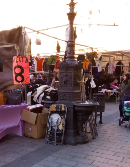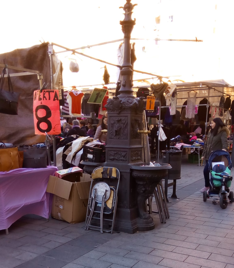 En la imatge que comparteix l'usuari, es pot veure com els marxants hi recolzen tot tipus de productes, des de cadires, o caixes de cartró, fins a caixes de sabates. També hi llencen paper i plàstics. D'aquesta manera, la font queda totalment inservible.