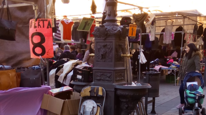 En la imatge que comparteix l'usuari, es pot veure com els marxants hi recolzen tot tipus de productes, des de cadires, o caixes de cartró, fins a caixes de sabates. També hi llencen paper i plàstics. D'aquesta manera, la font queda totalment inservible.