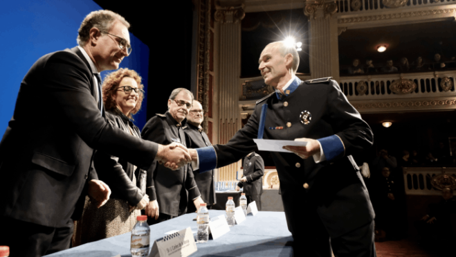 L’alcalde de Reus, Carles Pellicer, i la regidora de Seguretat Ciutadana, Convivència i Civisme, Dolors Vàzquez, han presidit aquest dijous 28 de novembre al Teatre Bartrina l’acte de lliurament de les distincions als membres del cos de seguretat municipal en reconeixement als serveis prestats, als serveis distingits i al mèrit professional, així com al mèrit ciutadà.