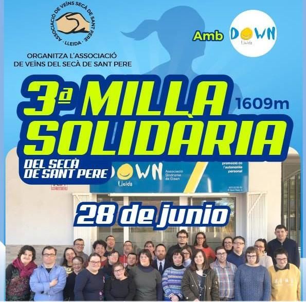 La Milla Solidària del Secà de Sant Pere obre aquest dilluns el termini d’inscripcions de ara a la seva tercera edició, que se celebrarà el divendres 28 de juny, a partir de les 18.15 hores per a les curses infantils i a les 19.00 per a la categoria absoluta.Com ja s’ha fet en els dos anys anteriors, els diners recollits a través de les inscripcions es destinaran íntegrament a Down Lleida, entitat que té la seva seu a la barriada lleidatana. També hi haurà un Dorsal 0 per aquells que, tot i no córrer, vulguin col·laborar. La previsió de l’organització, que va a càrrec de l’Associació de Veïns del Secà de Sant Pere, és poder arribar als 350 inscrits entre totes les categories.Tots aquells que desitgin preparar-se de cara a la prova, podran fer-ho a partir del 6 de juny cada divendres a les 20.00 hores amb uns entrenaments dirigits que s’iniciaran al Centre Cívic del Secà.Una altra de les novetats d’enguany és que hi haurà un premi especial per al corredor i corredora que aconsegueixin batre el rècord de la prova.Podeu trobar més informació i fer la vostra inscripció a www.iter5.cat.