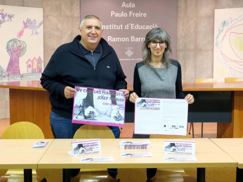 La Paeria i la demarcació de Lleida del Col·legi de Periodistes de Catalunya convoquen conjuntament el concurs periodístic Josep Pernau, que enguany arriba a la 14a edició. La regidora d’Educació, Cooperació, Drets Civils i Feminismes, Sandra Castro, i el president del Col·legi a Lleida, Rafa Gimena, han presentat la nova convocatòria, que s’adreça a l’alumnat d’ESO, batxillerat i cicles formatius de centre educatius del a ciutat.