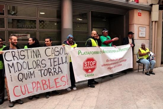 Membres de la PAH han ocupat la seu del Servei Territorial d'Habitatge de la Generalitat a Lleida per exigir una solució per a una família amb quatre fills, dos dels quals menors, que ocupen des de fa sis mesos un pis del barri de la Mariola i que havia de ser desallotjada aquest dijous. L'immoble, propietat de l'Agència de l'Habitatge de Catalunya, està assignat a una altra família que no hi pot entrar a viure mentre segueixi ocupat. El desallotjament s'ha posposat, de moment, fins dilluns però abans Generalitat i Ajuntament de Lleida s'han compromès a revisar l'expedient d'aquesta família malgrat que l'informe dels serveis socials descarta que hi hagi risc d'exclusió social, cosa que neguen des de la PAH. La Paeria els ofereix anar una pensió com a solució provisional però els afectats ho rebutgen i reclamen quedar-se al pis pagant un lloguer social o que els en facilitin un altre.La família, amb quatre fills, dos dels quals menors d'edat, porta vivint des de fa sis mesos en un pis que van ocupar al número 25 dels Blocs Joan Carles del barri de la Mariola de Lleida. Des de l'Agència de l'Habitatge de Catalunya se'ls havia donat de marge fins aquest dijous perquè abandonessin l'immoble ja que aquest està assignat a una altra família "que ha seguit tot el protocol reglamentari" i que "està esperant per poder-hi entrar", segons ha explicat la directora dels serveis territorials de Territori i Sostenibilitat a Lleida.