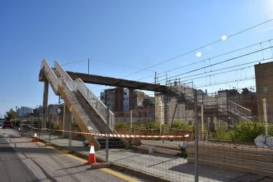 La setmana passada van començar les obres de rehabilitació de la passarel·la de vianants sobre les vies del tren de Baix a Mar. El regidor de Via Pública i Manteniment, Vale Pino, ha recordat que l’objectiu d’aquesta actuació és rehabilitar de manera integral aquest pas ubicat entre el carrer del Ferrocarril i el carrer de Joaquim Costa, i garantir així la seguretat dels usuaris.Un informe tècnic havia detectat fissuració i cobriments de crosta marcats per la corrosió dels armats; humitats en la part inferior de les superfícies de formigó, fissures i deformació dels trams d’escala; separació en els paviments dels replans; desnivells, trencament i disfuncions dels esglaons; corrosió generalitzada de les baranes, i quartejat del formigó de reforç-reparació del pilar baix del carrer de Joaquim Costa. D’acord amb aquests problemes detectats, les obres contemplen la rehabilitació de l’estructura, el canvi d’esglaons i el canvi de baranes i tanques.