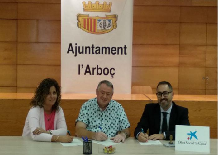 L’Ajuntament de l’Arboç i l’Obra Social de La Caixa van signar el passat divendres 11 d’octubre un conveni de col.laboració segons el qual, La Caixa fa una donació de 3.500€ als Serveis Socials Bàsics de l’Arboç per a pal·liar situacions de necessitat a les famílies de la Vila. Algunes necessitats incloses són: ajuts als llibres de text per a famílies desfavorides, ajuts per a sufragar les despeses de subministres bàsics (aigua, llum i gas) per a famílies que no disposen de recursos suficients per afrontar-les, ajuts al banc d’aliments, o al Centre Obert.