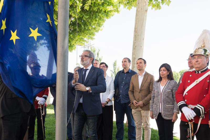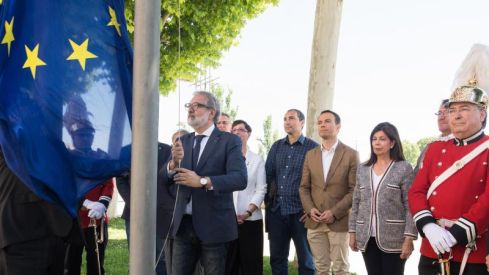 L’Ajuntament de Lleida ha organitzat com cada any un seguit d’activitats participatives i divulgatives per celebrar la Setmana d’Europa, coincidint amb la commemoració avui, dia 9 de maig, del Dia d’Europa. El paer en cap, Fèlix Larrosa, ha presidit l’acte institucional, amb l’himne i la hissada de la bandera europea davant de l’Ajuntament (avinguda de Blondel). Hi han assistit diversos regidors, autoritats locals i representants dels cossos de seguretat a la ciutat.