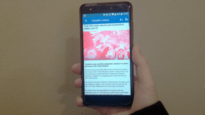 Es tracta d'una aplicació que pot ser descarregada per qualsevol ciutadà al seu telèfon mòbil, i en la qual poden informar sobre qualsevol símptoma que tinguin. Aquesta informació serà enviada al Servei Català de la Salut.