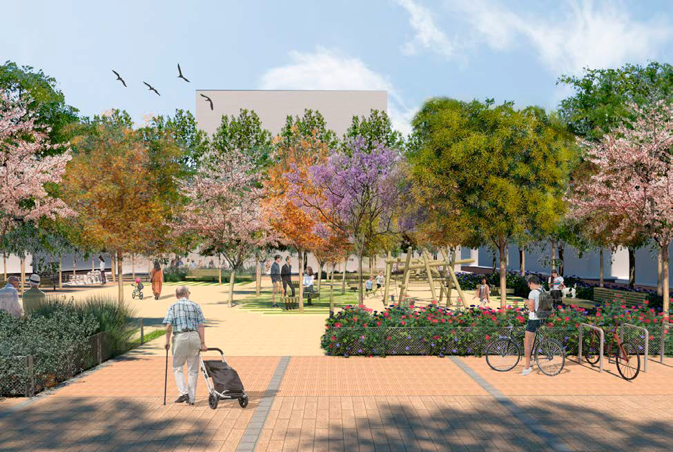 La reordenació dels espais de la plaça es farà també amb visió de gènere i de seguretat ciutadana, evitant que quedin racons amagats o foscos i ressituant la renovada zona de jocs infantils, separada dels carrers per on passen vehicles.