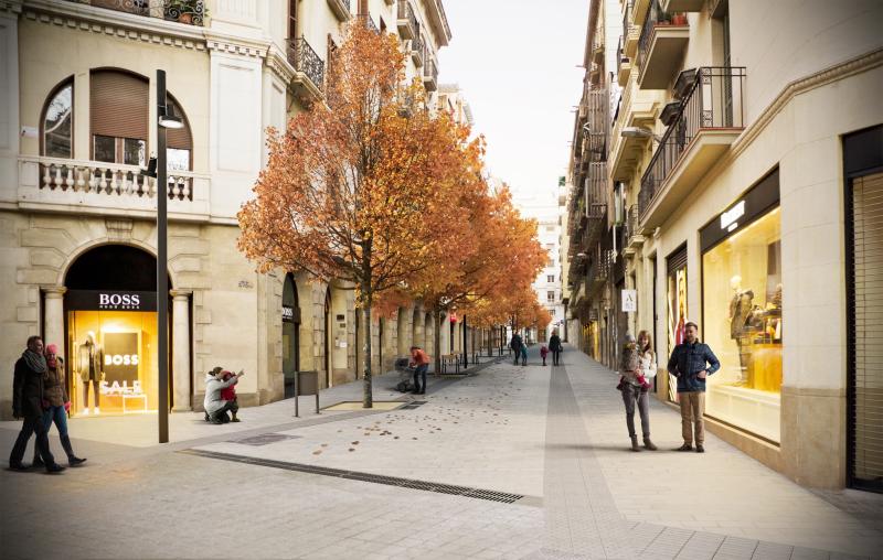 A dia d’avui, el carrer té una calçada segregada amb dues voreres estretes, sense llocs per seure ni estar-s’hi i amb una filera d’aparcaments al costat Besòs i una de motos al costat Llobregat. Amb la intervenció es capgirarà la situació actual. Es crearà una plataforma única amb el paviment de llamborda de formigó prefabricat, i hi haurà arbres en una sola línia amb escocells de gran dimensió –ara no n’hi ha cap–.