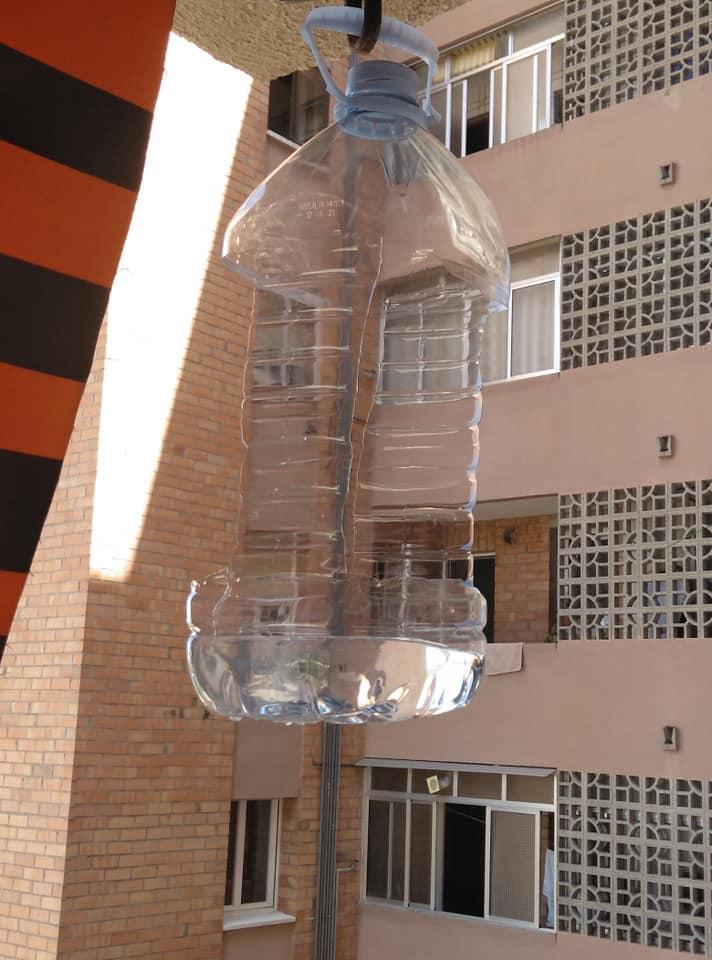 L'onada de calor que estem vivint aquests dies afecta grans i petits, a animals i a persones, per aquest motiu, Natalia Rodríguez, veïna del barri de Sant Pere i Sant Pau, ha compartit a les xarxes socials la solució per tal que els ocells puguin refrescar-se i hidratar-se. Es tracta d'agafar una garrafa d'aigua, fer-li una obertura als laterals i penjar-la al balcó, tal com es pot veure a la fotografia. Una idea que ha agradat molt a aquells que s'han fet eco de la notícia i que no han trigat a copiar. Molts ocells han patit les conseqüències de l'onada amb temperatures que superen els 40º i han perdut la vida.