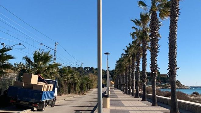 Aquesta setmana l’Ajuntament ha iniciat la renovació de l’enllumenat públic del Passeig Marítim de la Platja Llarga. Concretament, se substituiran les 78 lluminàries existents de vapor de sodi i halogenurs metàl·lics i s’instal·laran 10 nous punts de llum per acabar d’enllumenar zones concretes del passeig que ara quedaven més fosques.