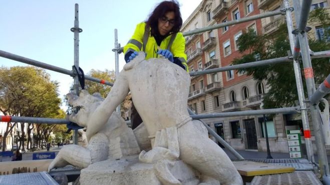 La Font del Centenari, un dels conjunts monumentals emblemàtics de la Rambla Nova de Tarragona, recuperarà el seu aspecte original d’aquí a pocs dies, després de l’acte vandàlic d’autoria desconeguda que va patir a final de l’any passat. La Unitat de Conservació i Restauració de Béns Culturals de la Diputació a Tortosa, referent a Catalunya en recuperació del patrimoni, serà l’encarregada de restituir els elements trencats de la part escultòrica de la font, concretament el cap d’una de les figures i la mà d’una altra. Els treballs, que duraran una setmana aproximadament, han començat avui amb la col·locació de dues bastides.