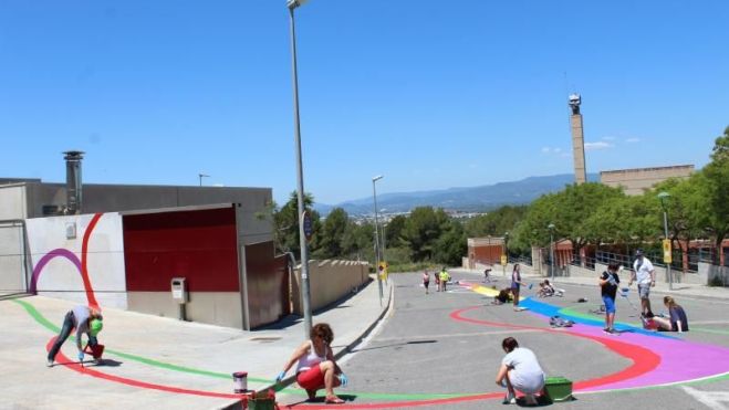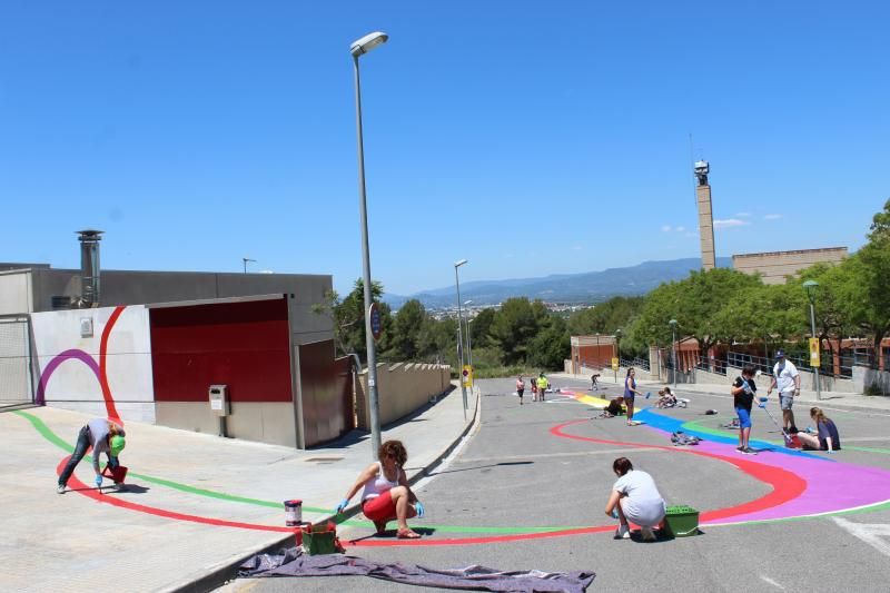 Tant els tallers com l’aplicació de l’obra han estat conduïts i tutoritzats per l’artista Pere Grané. El jovent participant haoptat per un flux de línies pintades dels colors de la bandera LGTBI per reivindicar i posar en relleu les diversitats sexuals.