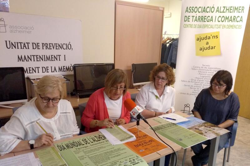 L’Associació Alzheimer Tàrrega ha organitzat un nou programa d'activitats amb l’objectiu de sensibilitzar la ciutadania sobre els estralls que provoca aquesta malaltia neuro-degenerativa en les persones que la pateixen i els seus familiars. Serà en el marc del Dia Mundial de l’Alzheimer 2019, amb una conferència, una caminada popular i un espectacle musical benèfic entre altres propostes. La iniciativa compta amb el suport de l’Ajuntament de Tàrrega i altres entitats del teixit associatiu local. A més de fer visible la malaltia al conjunt de la societat, les activitats serviran per recaptar fons que garantiran la continuïtat del servei assistencial de l’Associació Alzheimer Tàrrega, la qual atén actualment 65 usuaris.