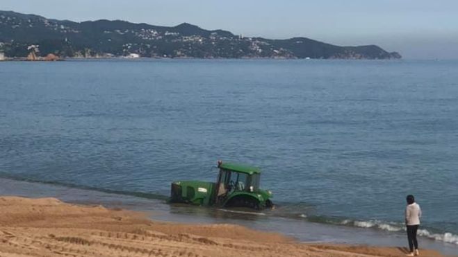 Ahir al migdia, en Xavier estava desembussant les rieres de Blanes amb el seu tractor, quan de sobte es va apropar més de l’habitual a la riba del mar. En aquell precís instant, la sorra va començar a cedir fins a enfonsar una bona part del tractor. El conductor del vehicle va sortir de la cabina per por que s’acabés d’enfonsar del tot. Com ens diu en Xavier: “La sorra de la platja és molt traïdora”.En Xavier fa molts anys que es dedica al sector de la maquinària i una de les seves feines és anar a desembussar rieres per tal d’aconseguir que no s’obstrueixin les clavegueres. Els temporals i les onades del mar fan que s’embussin les clavegueres amb facilitat. També ens explica que no ha estat el seu únic ensurt i és per això, que ell somriu i ens ho explica amb molta tranquil·litat i senzillesa.Aquest afer va succeir a la platja de S’Abanell de Blanes, a l’altura del carrer Enric Morera. Unes hores després que el tractor s’enfonsés, una màquina giratoria va recollir el tractor i tot va quedar en una mera anècdota més.