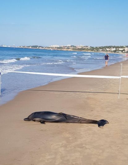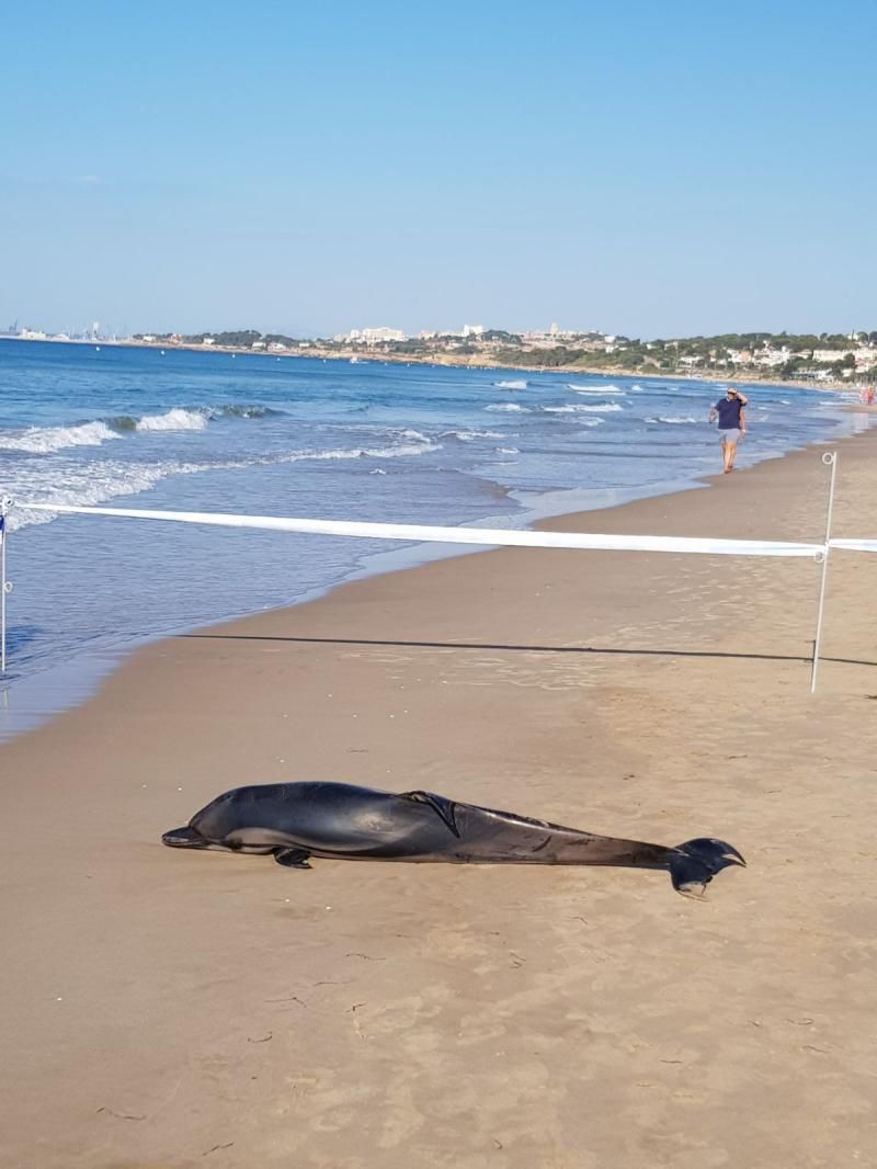 Aquest matí els primers usuaris de la platja Llarga de Tarragona s'han trobat amb un petit dofí mort a l'arena.S'ha acordonat l'àrea on es torbava l'animal, per tal de que ningú s'hi acostés.