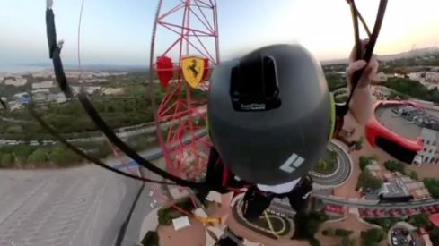 King va poder escalar l'atracció Red Force, situada al parc temàtic de Ferrari Land, i que té una alçada de 120 metres. El mateix protagonista explica en un text que acompanya el seu vídeo d'Instagram que ja fa temps que tenia ganes d'introduir-se al salt base, però que, fins ara, amb 22 anys, no havia pogut intentar-ho.