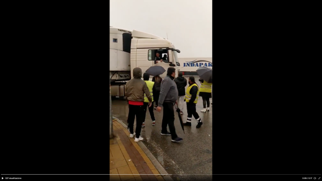 En alguns casos, s'han viscut moments de tensió entre camioners a favor de la vaga i en contra d'ella. En canvi, ha sigut poc habitual veure imatges d'agermanament entre ells. Una d'aquestes excepcions és la d'aquest vídeo a Màlaga. Els piquets han aturat al seu company i, després d'una conversa, s'ha afegit a la lluita.
