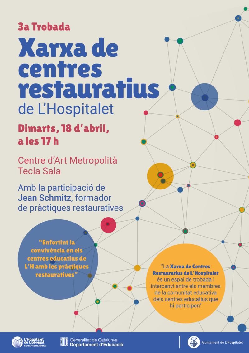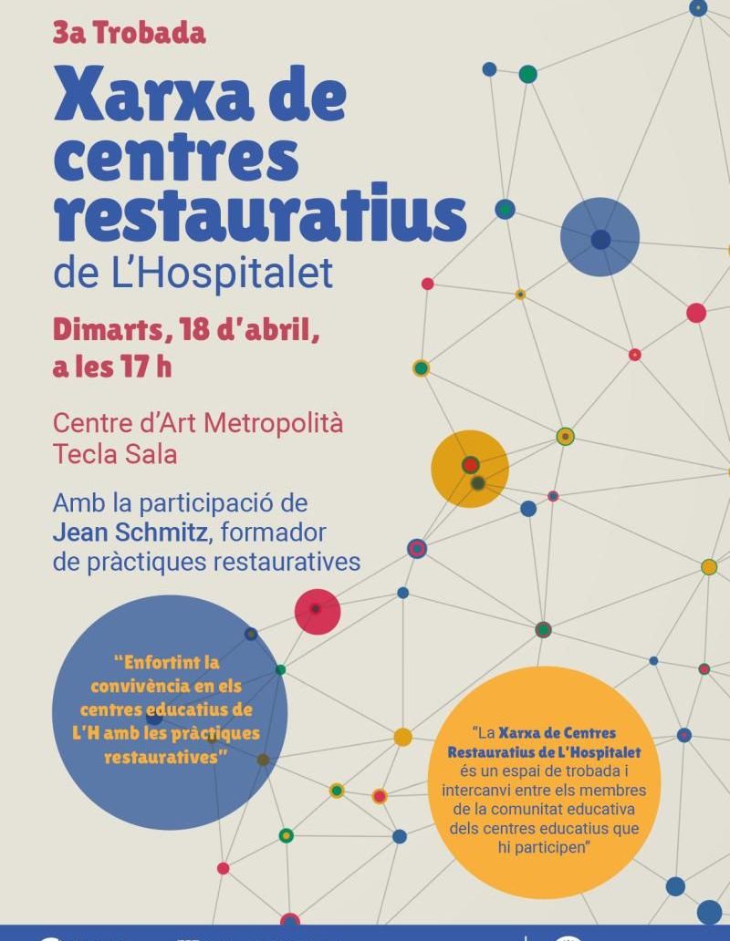 La Xarxa de Centres Restauratius de L’Hospitalet es reunirà demà per posar en comú les iniciatives que duen a terme en els seus centres a través del projecte municipal que té com a objectiu enfortir la convivència als centres educatius de la ciutat a partir de les pràctiques restauratives. La 3a Trobada de la Xarxa de Centres Restauratius es farà dimarts, 18 d’abril, a partir de les 17 hores, al Centre Cultural Tecla Sala. Està prevista l’assistència de Jean Schmitz, autor del llibre Prácticas restaurativas para la prevención y gestión de conflictos en el ámbito educativo i formador en pràctiques restauratives. El projecte —impulsat per les àrees municipals d’Educació, Innovació i Cultura, i Convivència i Seguretat, amb la col·laboració del Centre de Recursos Pedagògics— el desenvolupa l’Associació Tésera Mediació. Es va posar en marxa l’octubre de 2020, amb la realització de tallers amb les comunitats educatives de cada centre, i el gener de 2021 es va crear la Xarxa, integrada actualment per 24 centres educatius de la ciutat (13 escoles, 2 instituts escola i 9 instituts). Els objectius de la jornada són afavorir el coneixement entre totes les comunitats educatives que participen en el projecte, intercanviar les pràctiques que han fet fins ara, ampliar coneixements sobre la mirada restaurativa i el seu impacte; compartir les necessitats, i recollir les properes accions del treball de la xarxa i de les accions en xarxa. Les pràctiques restauratives ofereixen eines que permeten prevenir, detectar, gestionar i resoldre situacions de conflicte o problemes, amb l’objectiu de crear espais de diàleg que aprofundeixin en la relació i en la creació de comunitats connectades. En aquesta línia, ofereix formació a les persones membres de la comunitat educativa (personal directiu i docent, alumnat i famílies) en pràctiques restauratives com a eina per enfortir la convivència.